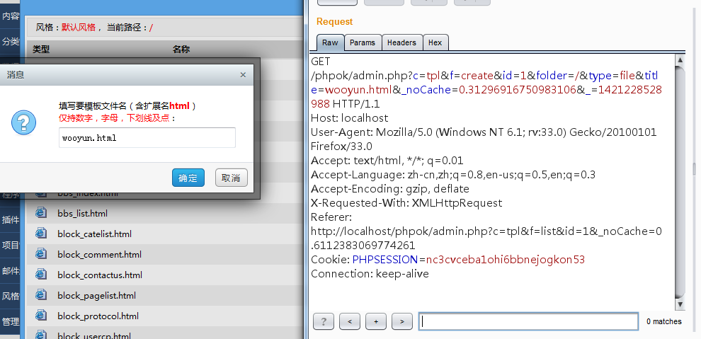 GET /phpok/admin.php?c=tpl&f=create&id=1&folder=/&type=file&title=wooyun.html